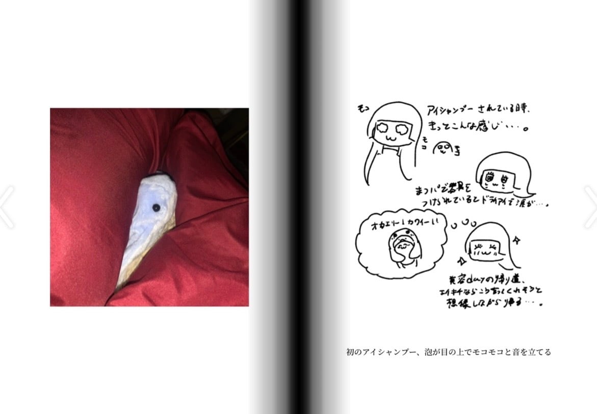 きゅいー絵日記とペットと戯れる姿とぬいぐるみの写真が多めです。